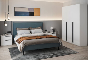 - Київський стандарт, МДФ, ламінована ДСП, система відкривання Tip-On, штанга і полиці, мінімалізм, німфея альба / білий глянець, 4D.