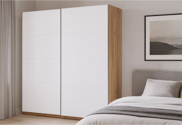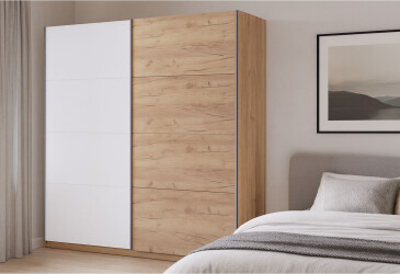 - MiroMark, глянцева ДСП, ламінована ДСП, штанга, мінімалізм, дуб крафт / білий, 2D.