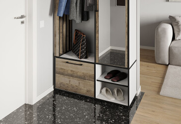 - пластикові, не входить в комплект, Moreli, ламінована ДСП, ламінована ДСП, штанга і полиці, лофт, дуб аппалачі / антрацит, з шафою із розкривними дверима.