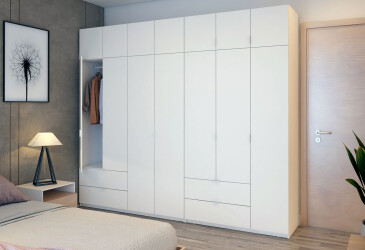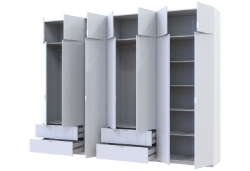- Doros, ламінована ДСП, ламінована ДСП, телескопічні напрямні повного висуву, штанга, полиці та шухляди, модерн, білий, 7D.
