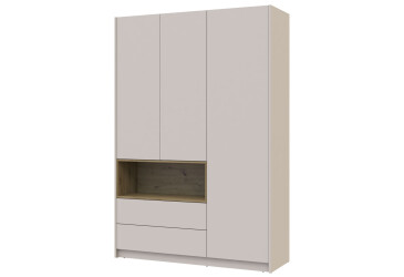- Doros, ламінована ДСП, ламінована ДСП, штанга, полиці та шухляди, мінімалізм, кашемір / дуб артизан / кашемір, 3D.