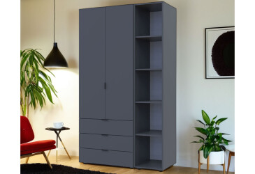 - Doros, ламінована ДСП, ламінована ДСП, штанга, полиці та шухляди, мінімалізм, графіт / дуб евок / графіт, 3D.