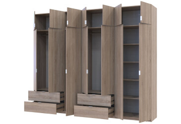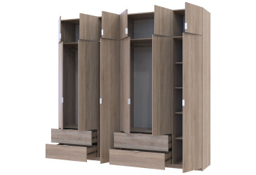 - Doros, ламінована ДСП, ламінована ДСП, телескопічні напрямні повного висуву, штанга, полиці та шухляди, модерн, дуб сонома, 6D.