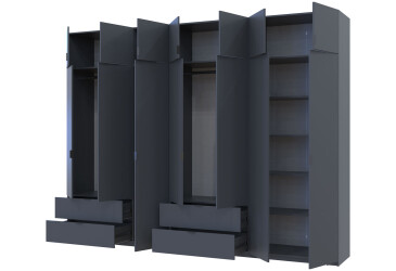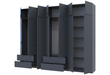 - Doros, ламінована ДСП, ламінована ДСП, роликові напрямні, штанга, полиці та шухляди, модерн, графіт, 4D.