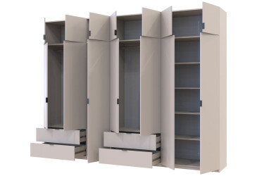 - Doros, ламінована ДСП, ламінована ДСП, телескопічні напрямні повного висуву, штанга, полиці та шухляди, модерн, кашемір, 8D.