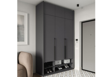 - Moreli, ламінована ДСП, ламінована ДСП, петлі з дотягувачами, регульовані ніжки, овальна чорна штанга, штанга і полиці, сучасний, антрацит, 4D.