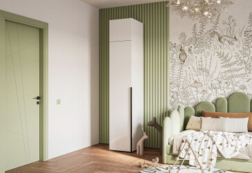 - Київський стандарт, МДФ, ламінована ДСП, система відкривання Tip-On, штанга, мінімалізм, німфея альба / білий мат, 4D.