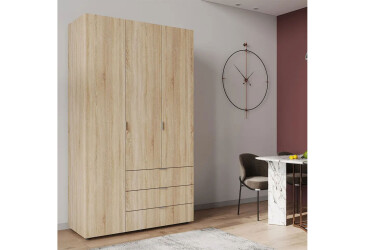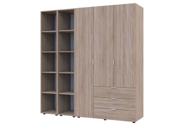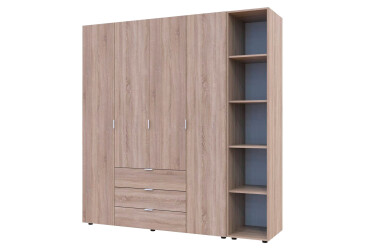 - Doros, ламінована ДСП, ламінована ДСП, роликові напрямні, штанга, полиці та шухляди, модерн, дуб сонома, 3D.