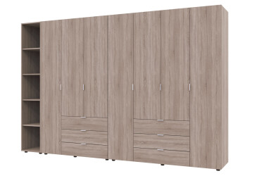 - Київський стандарт, ламінована ДСП, ламінована ДСП, система відкривання Tip-On, штанга і полиці, мінімалізм, дуб аппалачі, 6D.