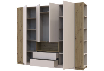 - Doros, ламінована ДСП, ламінована ДСП, штанга, полиці та шухляди, мінімалізм, кашемір / дуб артизан, 4D.