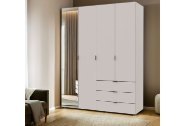 - Doros, ламінована ДСП, скло, ламінована ДСП, роликові напрямні, штанга, полиці та шухляди, мінімалізм, кашемір, 4D.
