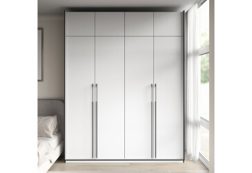 - Moreli, ламінована ДСП, ламінована ДСП, петлі з дотягувачами, регульовані ніжки, овальна чорна штанга, штанга і полиці, сучасний, білий, 4D.