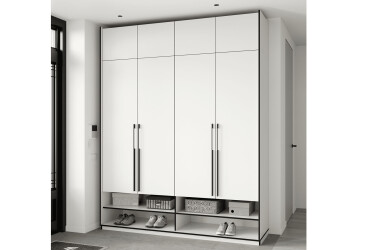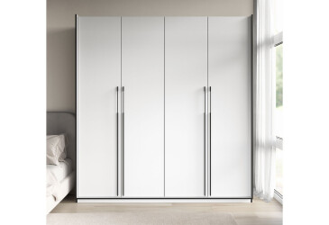 - Moreli, ламінована ДСП, ламінована ДСП, петлі з дотягувачами, регульовані ніжки, овальна чорна штанга, штанга і полиці, сучасний, білий, 4D.