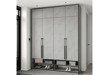 - Moreli, ламінована ДСП, ламінована ДСП, петлі з дотягувачами, регульовані ніжки, овальна чорна штанга, штанга і полиці, сучасний, бетон тефра, 4D.