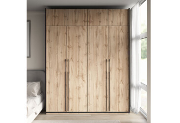 - Moreli, ламінована ДСП, ламінована ДСП, петлі з дотягувачами, регульовані ніжки, овальна чорна штанга, штанга і полиці, сучасний, дуб сонома, 4D.