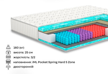 - 80х200, Matroluxe, 322 шт., sisal, FHR Double Color Foam ML®, MML® Memory, Mix Felt, iML® Pocket Spring Hard, 180, II-III Середній, два рівні, Matroluxe - In Style, На незалежній пружині Pocket, без вакуумної скрутки.