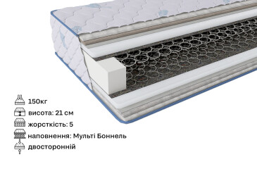 Матрац може мати залежні Bonnel пружини, незалежний блок пружин Pocket Spring або безпружинну конструкцію. Кожен з них має свої переваги та недоліки, з якими можна познайомитися у наших статтях або ж поспілкувавшись із консультантом.