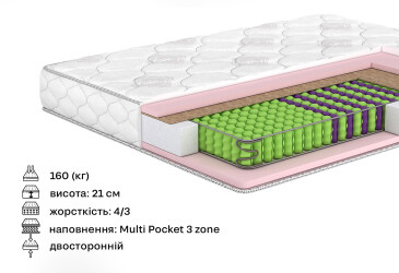 Матрац може мати залежні Bonnel пружини, незалежний блок пружин Pocket Spring або безпружинну конструкцію. Кожен з них має свої переваги та недоліки, з якими можна познайомитися у наших статтях або ж поспілкувавшись із консультантом.