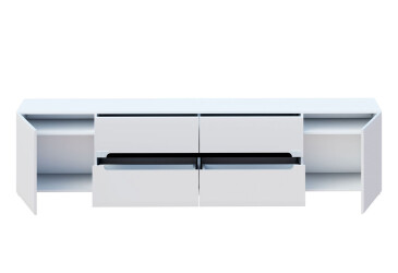 - новинка, Світ Меблів, глянцева МДФ, ДСП, телескопічні напрямні повного висуву, модерн, білий (вставка чорна), з 4 шухлядами, з дверцятами.