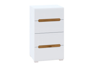 - новинка, Світ Меблів, глянцева МДФ, ламінована ДСП, телескопічні напрямні повного висуву, модерн, білий (вставка дуб аппалачі), з 4 шухлядами.