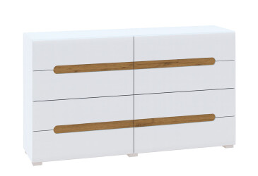 - новинка, Світ Меблів, глянцева МДФ, ламінована ДСП, телескопічні напрямні повного висуву, модерн, білий (вставка дуб аппалачі), з 8 шухлядами.