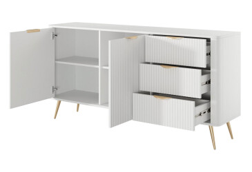 - ВМК, ламінована ДСП, патинована МДФ, ламінована ДСП, телескопічні напрямні повного висуву, класичні, білий, з 4 шухлядами, з високими опорами.