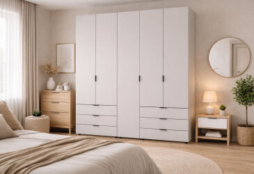 - Doros, ламінована ДСП, ламінована ДСП, роликові напрямні, штанга, полиці та шухляди, мінімалізм, кашемір, 5D.