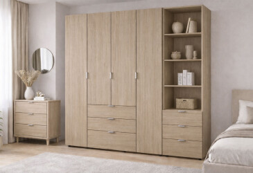- Doros, ламінована ДСП, ламінована ДСП, телескопічні напрямні повного висуву, штанга, полиці та шухляди, модерн, дуб сонома, 8D.