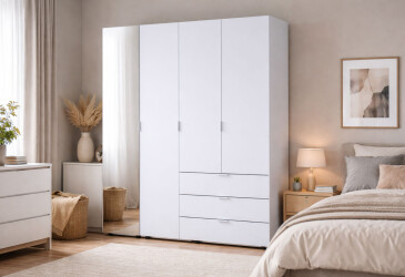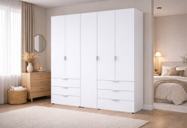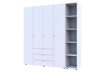 - MiroMark, глянцева ДСП, ламінована ДСП, телескопічні напрямні повного висуву, штанга, полиці та шухляди, мінімалізм, білий, 6D.