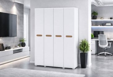 - Світ Меблів, глянцева МДФ, ламінована ДСП, штанга і полиці, модерн, білий (вставка дуб аппалачі), 4D.