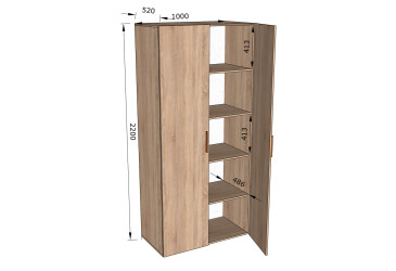 - Doros, ламінована ДСП, скло, ламінована ДСП, телескопічні напрямні повного висуву, штанга, полиці та шухляди, мінімалізм, дуб артизан / кашемір, 2D.
