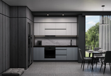 - MiroMark, фарбована МДФ, ДСП, фурнітура Blum, сучасний, напівмат сірий / напівмат білий, прямі.