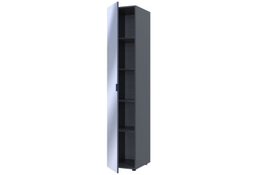 - Doros, ламінована ДСП, скло, ламінована ДСП, роликові напрямні, штанга, полиці та шухляди, мінімалізм, графіт, 4D.