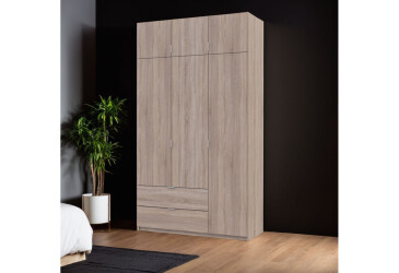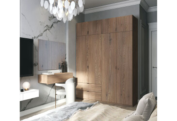 - Doros, ламінована ДСП, ламінована ДСП, штанга, полиці та шухляди, мінімалізм, кашемір / дуб артизан, 3D.