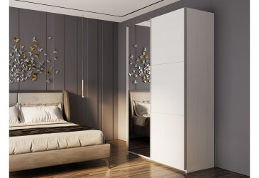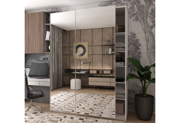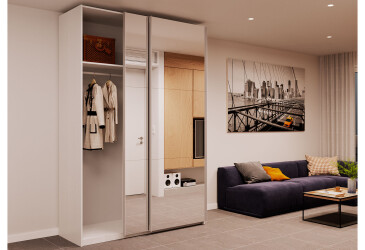 - Doros, ламінована ДСП, скло, ламінована ДСП, штанга і полиці, модерн, білий / дзеркало, 2D.