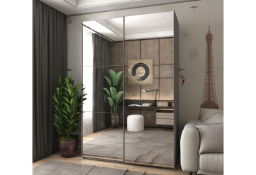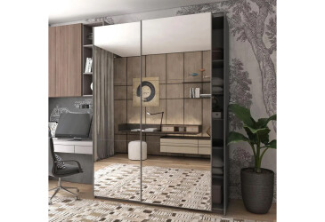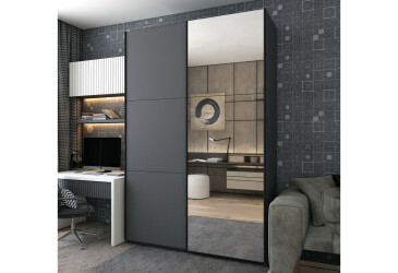 - Doros, ламінована ДСП, скло, ламінована ДСП, штанга і полиці, модерн, графіт / дзеркало, 2D.
