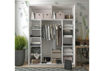 - Doros, ламінована ДСП, ламінована ДСП, роликові напрямні, штанга, полиці та шухляди, модерн, білий, 6D.