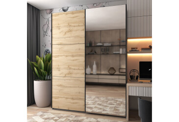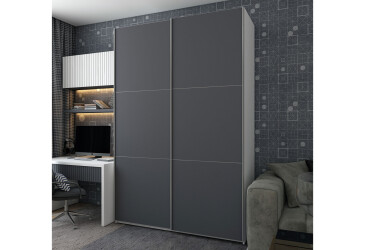 - Doros, ламінована ДСП, скло, ламінована ДСП, штанга і полиці, модерн, графіт / дуб евок, 2D.