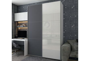 - Doros, ламінована ДСП, скло, ламінована ДСП, штанга і полиці, модерн, білий / графіт, 2D.