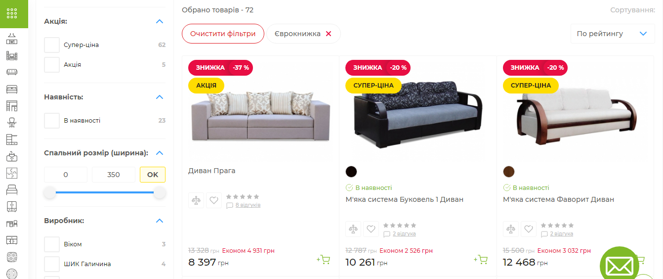 Якщо і цього замало, то з’явилася можливість фільтрації по типу приміщення. І тепер в будь-якій категорії можна підбирати товари не лише відповідного стилю та відтінків, а й за типом кімнати. Наприклад, дитяча, вітальня, спальня, кухня. Якщо відвідати офлайн шоу-рум немає можливості, то фото великого формату компенсують це і допоможуть більш детально ознайомитися з підібраним товаром.