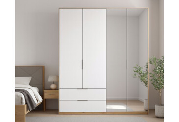 - MiroMark, глянцева ДСП, ламінована ДСП, телескопічні напрямні повного висуву, штанга, полиці та шухляди, модерн, глянець білий, 4D.