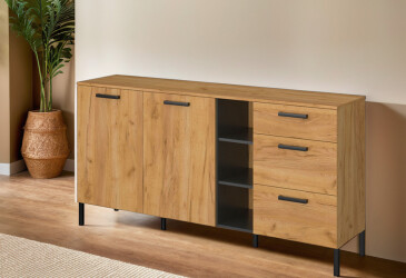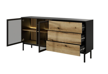 - Perfect Home, ламінована ДСП, ламінована ДСП, телескопічні напрямні повного висуву, модерн, дуб артизан / антрацит, з 3 шухлядами, з дверцятами.