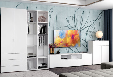 - Київський стандарт, МДФ, ламінована ДСП, телескопічні напрямні повного висуву, модерн, німфея альба / білий глянець, з 4 шухлядами.