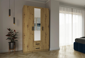 - Garant, ламінована ДСП, ламінована ДСП, роликові напрямні, штанга, полиці та шухляди, модерн, дуб артизан, 3D.