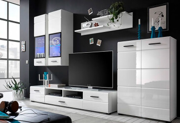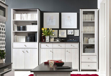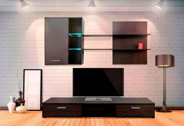 Що стосується стін, то варто віддати перевагу модульним конструкціям. Ви зможете самостійно набрати потрібну комплектацію та розставити елементи так, як вам зручно. Їхнє розташування нескладно змінювати, удосконалюючи інтер'єри, а також доповнювати гарнітур з часом новими модулями.