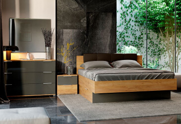 Спальня MiroMark Луна без шафи, 160 Дуб Крафт / Мат Лава