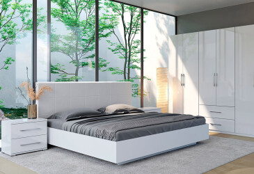 - 35 см, 160х200, із вкладом, без матраца, MiroMark, глянцева ДСП, ламінована ДСП, сучасний, білий, підйомний механізм, підйомний механізм.