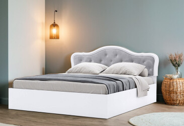 - 35 см, 160х200, із вкладом, без матраца, MiroMark, глянцева ДСП, ламінована ДСП, класичні, білий, підйомний механізм, підйомний механізм.