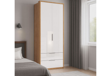 - MiroMark, глянцева ДСП, ламінована ДСП, штанга і шухляди, модерн, дуб крафт / білий, 2D.