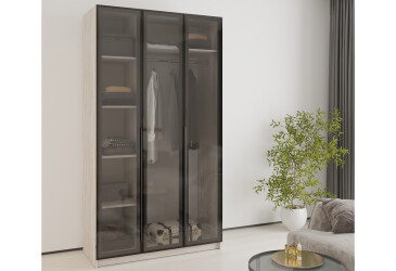 - MebelStar, скло, ламінована ДСП, петлі з дотягувачами, штанга і полиці, сучасний, дуб сонома, 3D.
